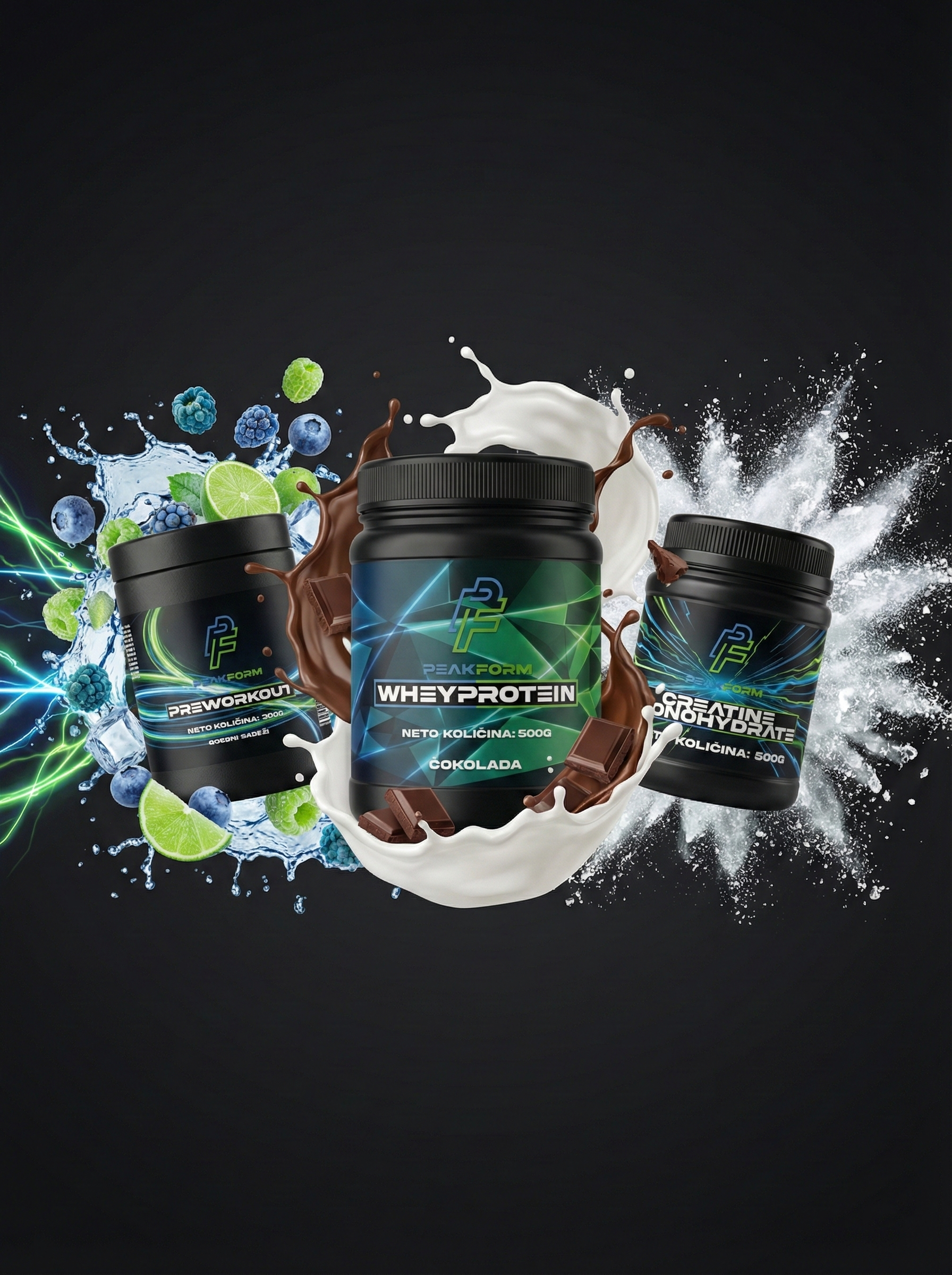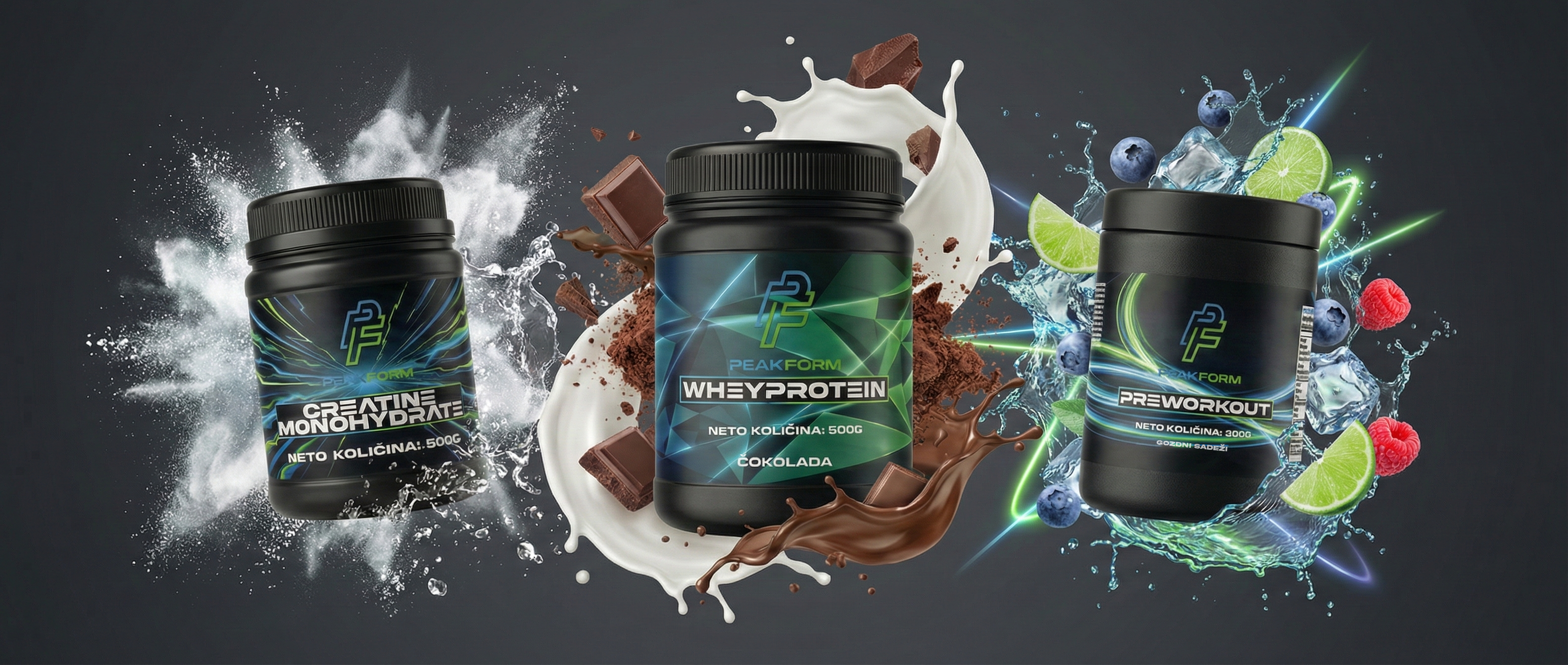 Trije ključni stebri tvojega uspeha v fitnesu. Znanstveno formulirani dodatki brez nepotrebnih polnil, ki ti pomagajo prebiti vsak plato.